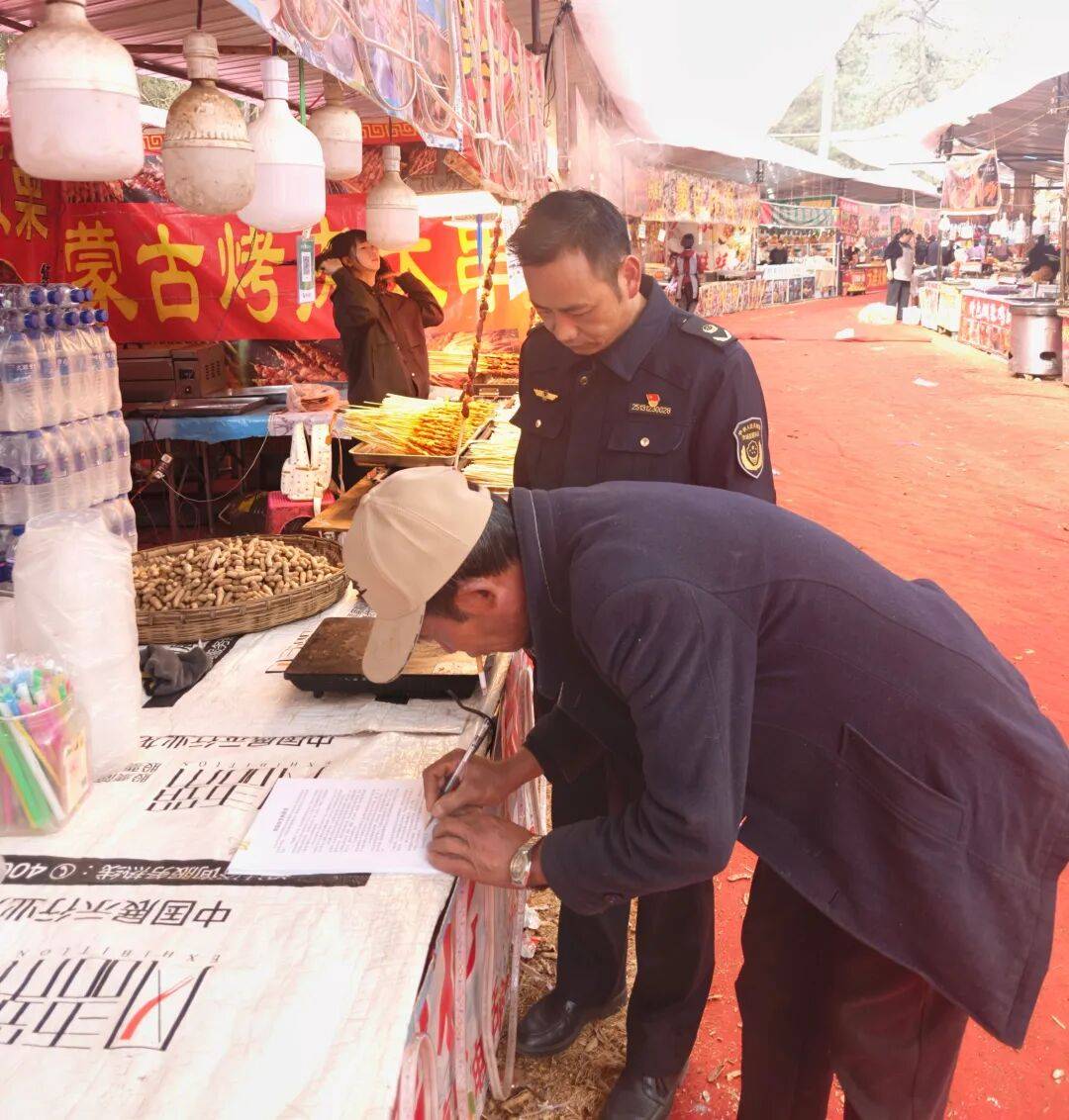 提前介入,严审天分。庙会举办前认实审查承办商运营资历,查看承办方案并进行存案登记,同时对承办方开展“三品一特”平安学问培训,督促落实从体义务,积极自查排题现患并整改到位。
